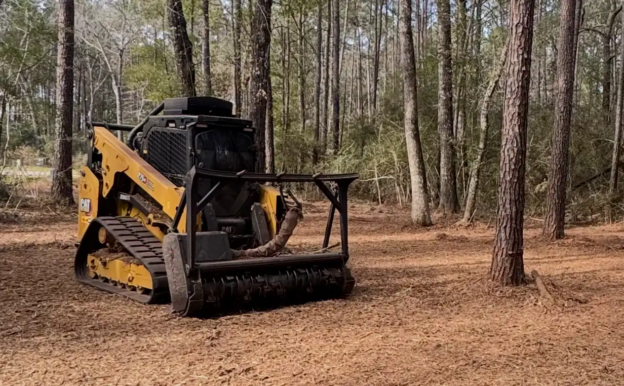 Our skid steer mulcher is the perfect solution for smaller jobs and precise work. Its compact size and maneuverability make it ideal for residential properties, tight spaces, and detailed clearing work where precision is key.